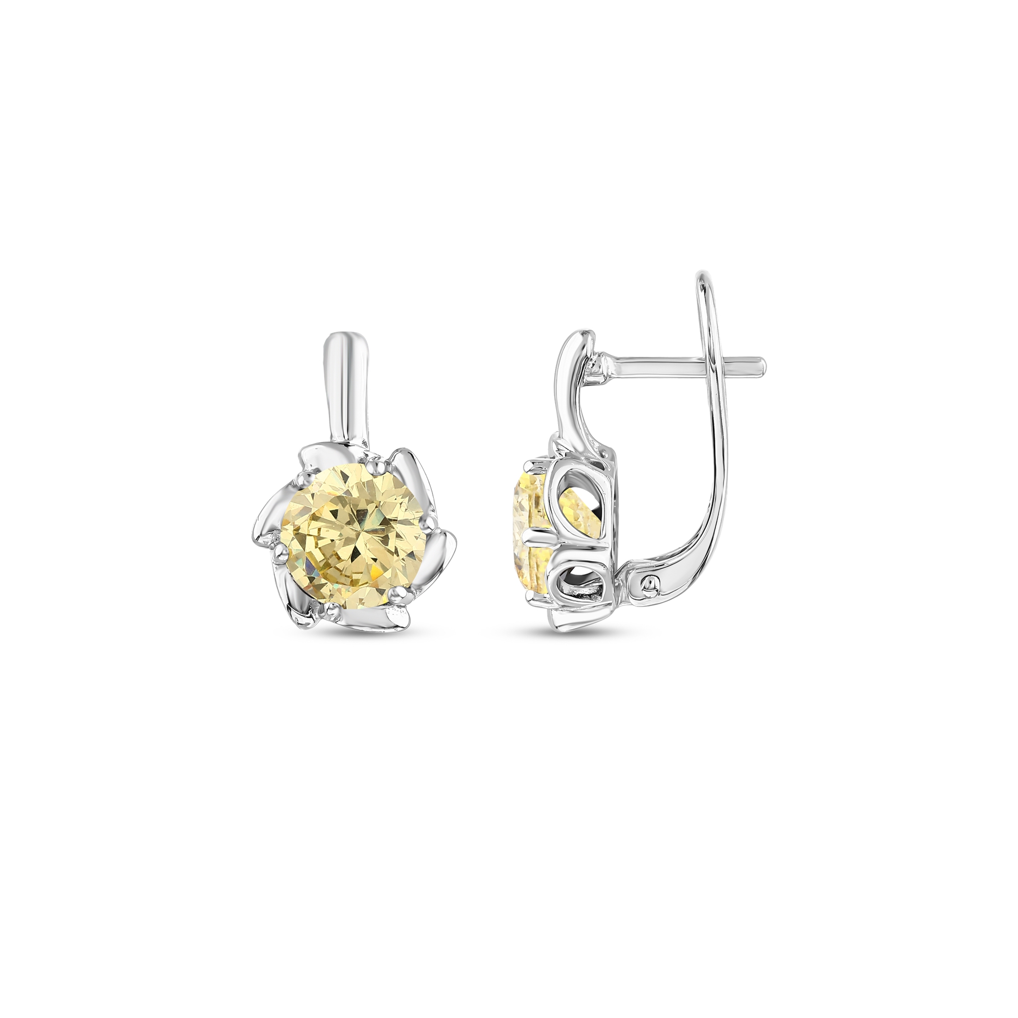 Gift Collection: Silver Earrings with a Spiral Design and Yellow Crystal Stones