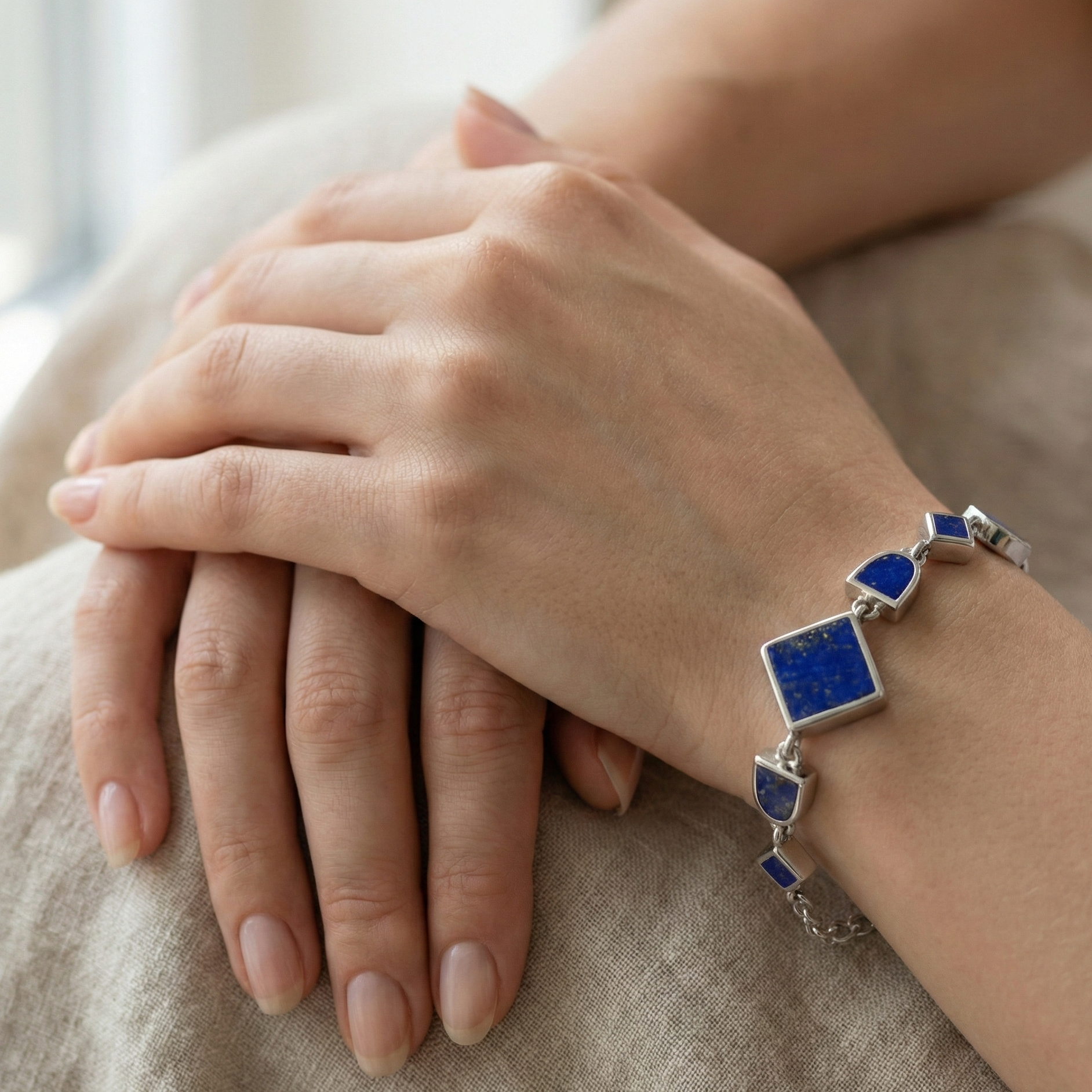 Lucky Gems Lapis Stone Silver Bracelet