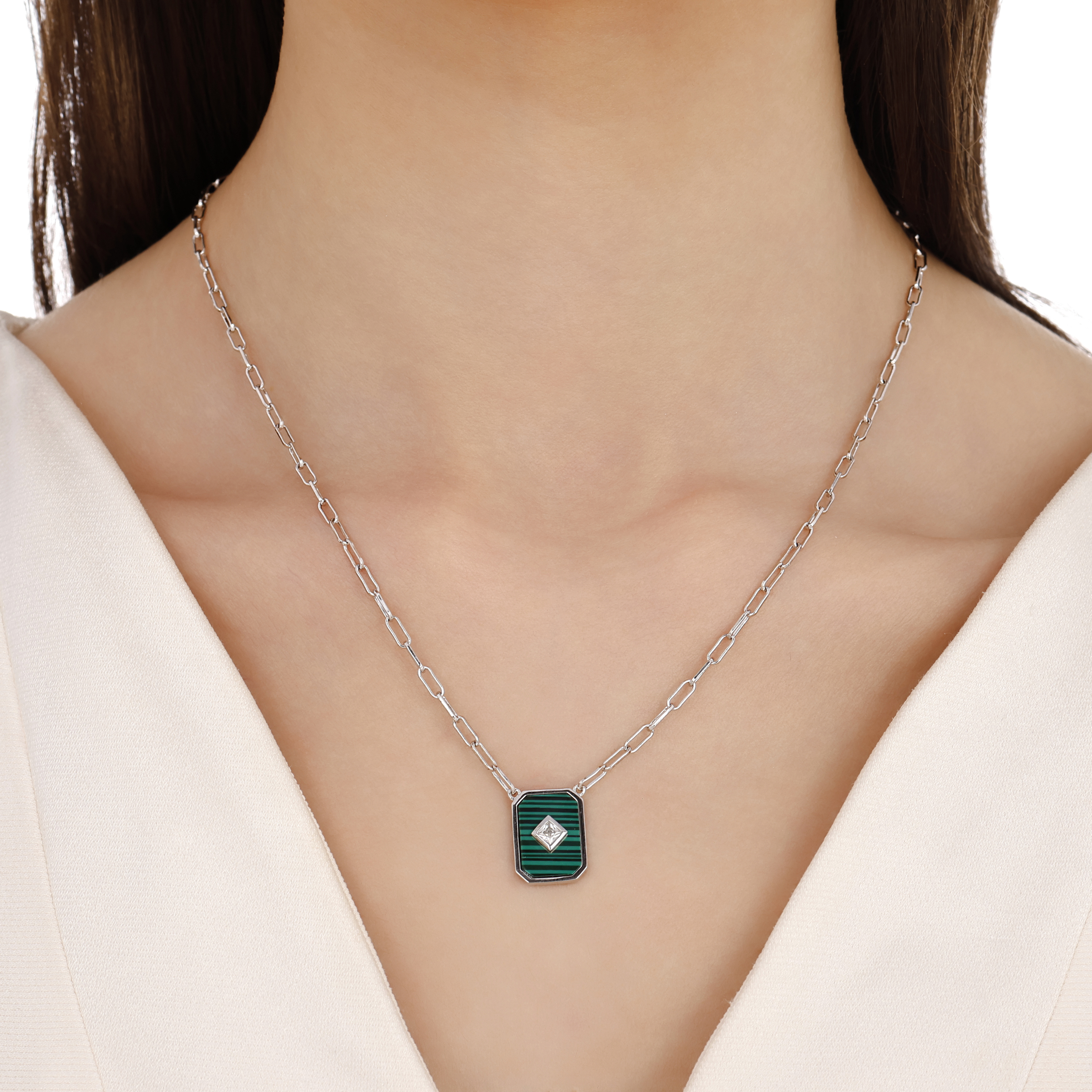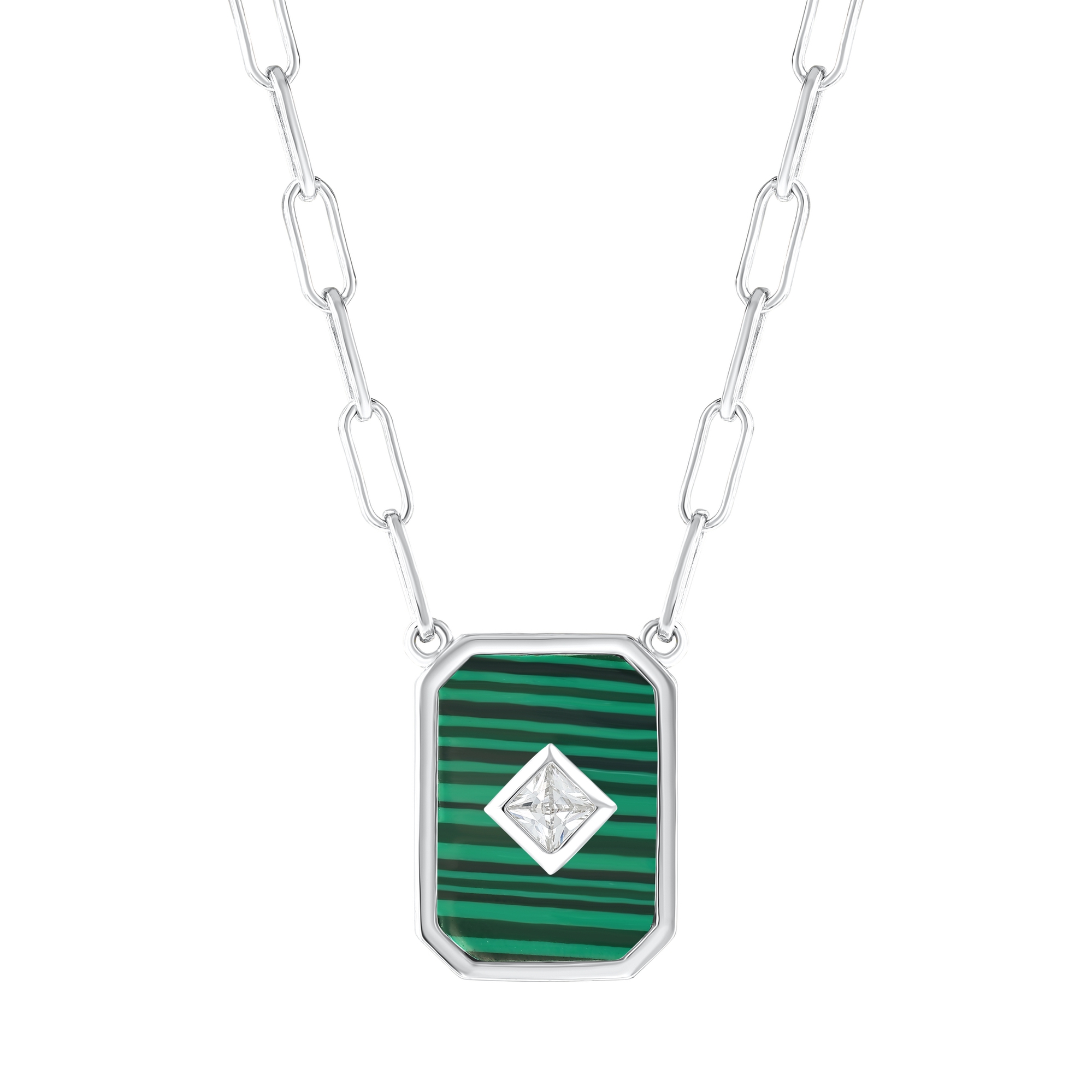 Lucky Gems Malachite Stone Silver Necklace