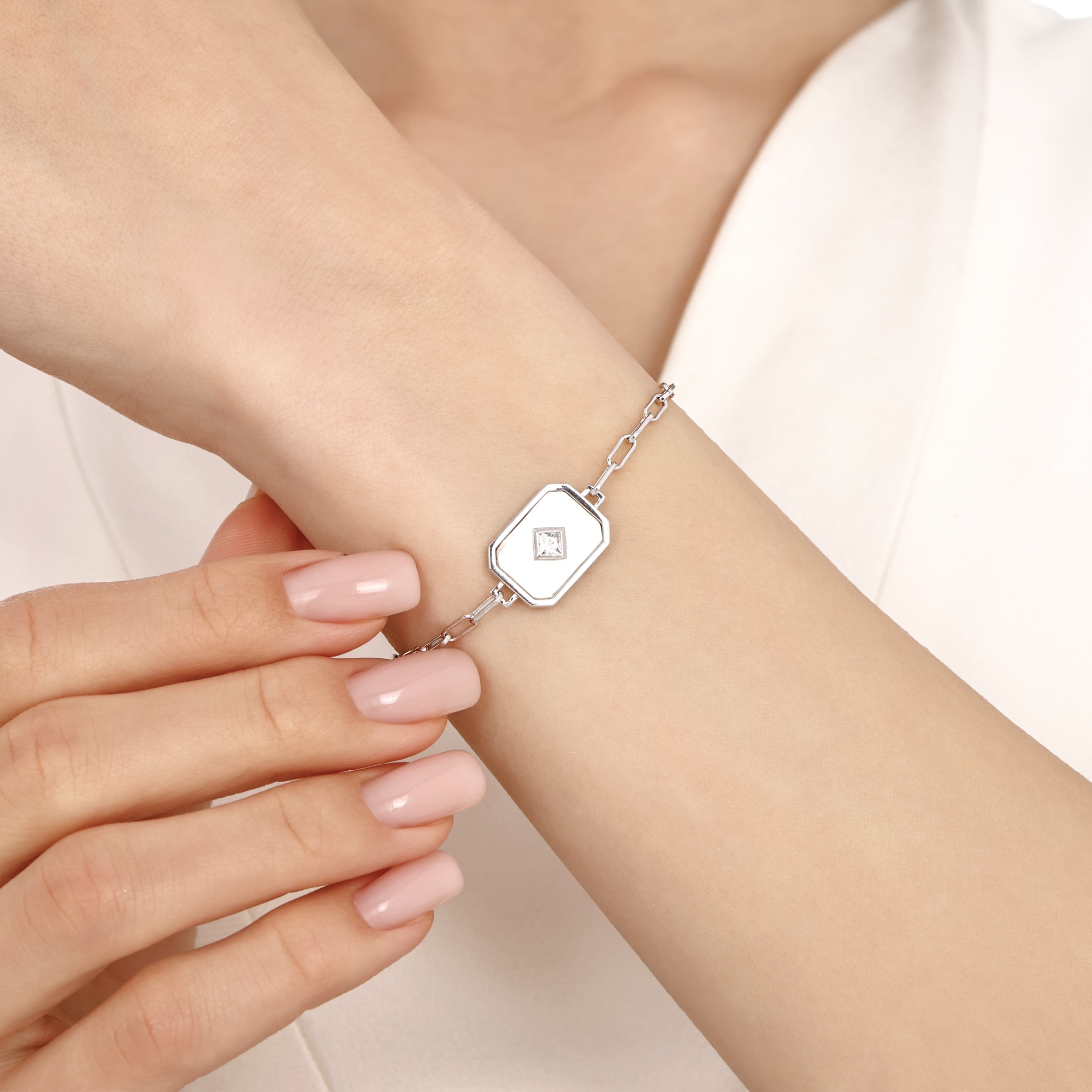 Lucky Gems Mother Of Pearl Stone Silver Bracelet