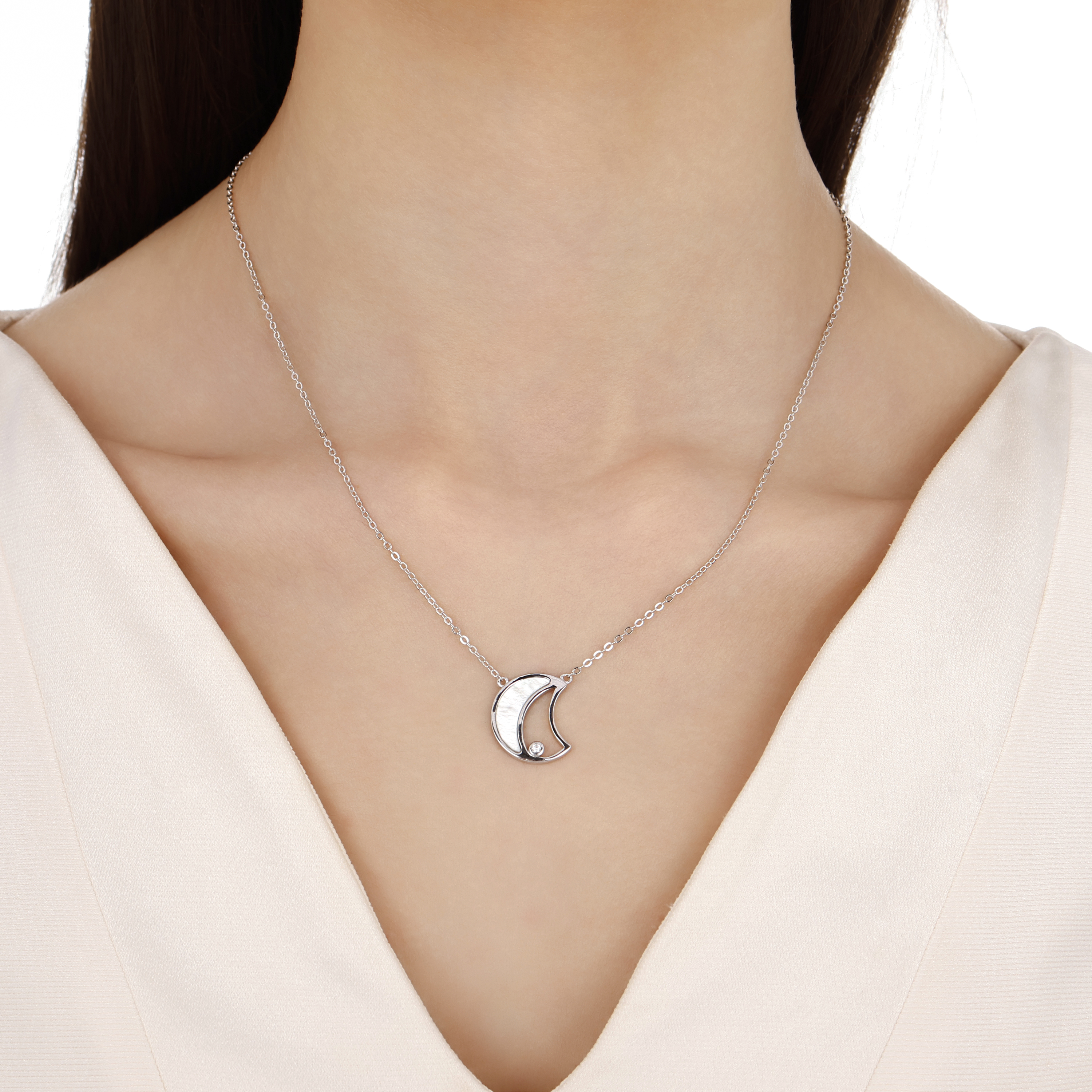 Lucky Gems Mother Of Pearl Stone Silver Necklace