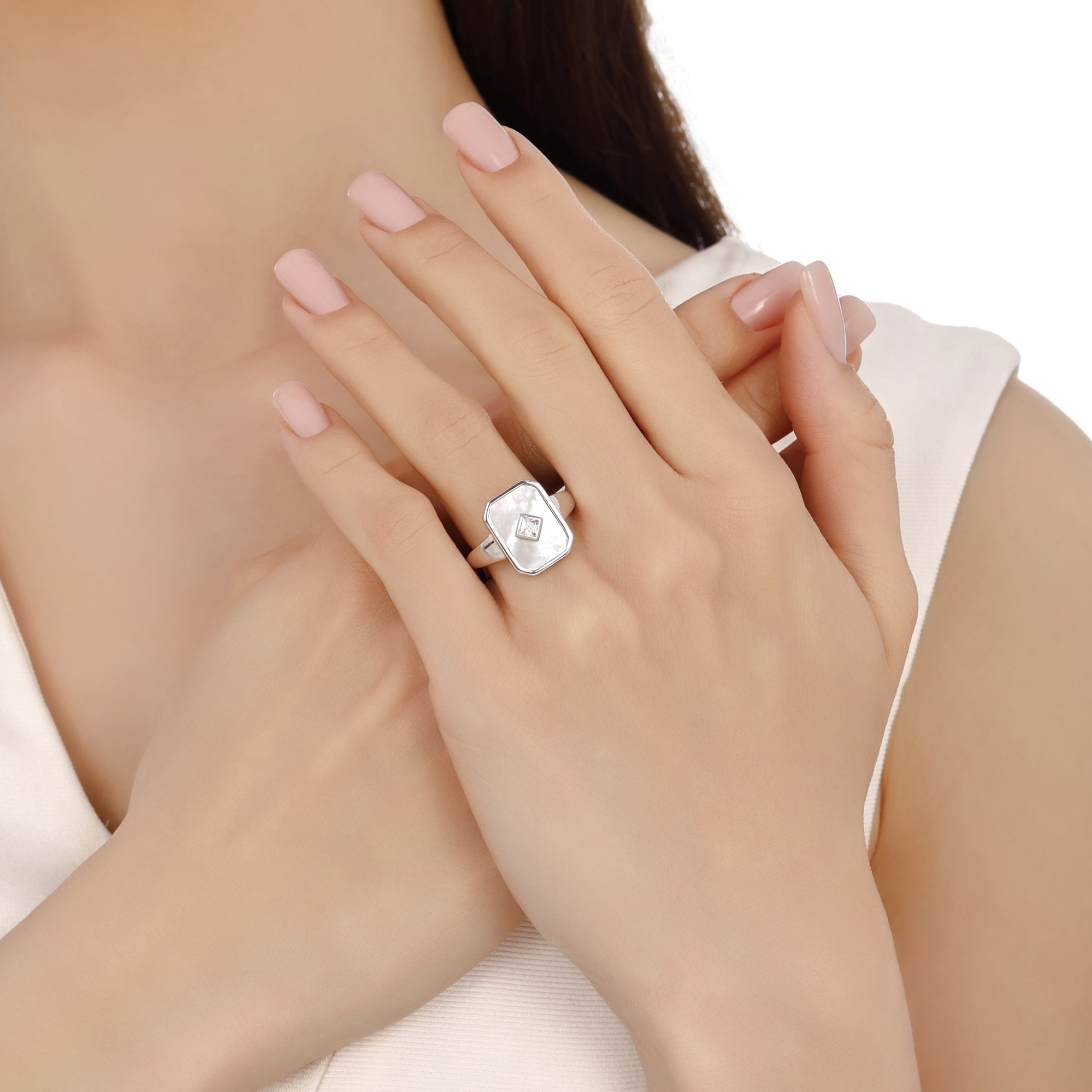 Lucky Gems Mother Of Pearl Stone Silver Ring